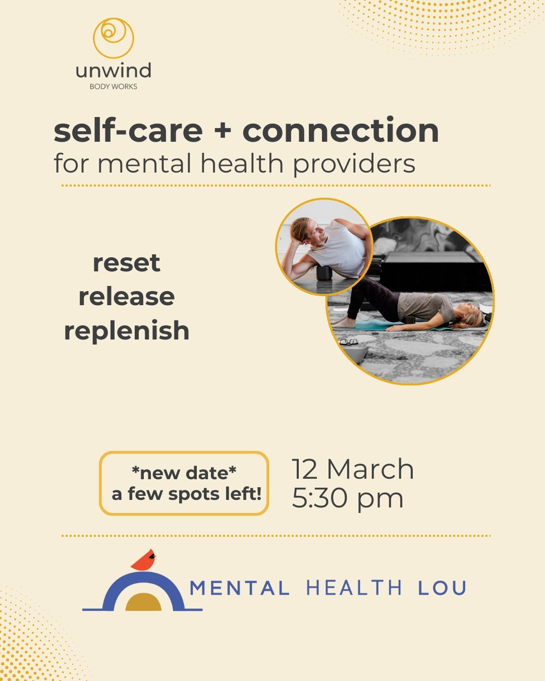 A special event for mental health professionals combining networking, nervous system support and snacks. Doors open at 5:30pm, class is at 6pm with time to connect and collaborate after.